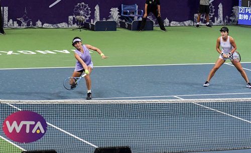 雙打在朱琳/王欣瑜和張帥/彭帥兩對中國組合之間進(jìn)行。雖然朱琳/王欣瑜今年初次配對,但她們的韌勁給觀眾留下了深刻的印象。面對兩個(gè)曾經(jīng)拿過大滿貫雙打冠軍的“帥帥組合”,毫不氣餒,主動(dòng)積極上網(wǎng)攔殺,給張帥/彭帥施加強(qiáng)大的心理壓力,迫使“帥帥”組合失誤增多,最終以6比2和7比6摘下雙打桂冠。