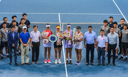 9月15日,江西網(wǎng)球公開賽進(jìn)入高潮。單打和雙打冠軍同日出爐。省人民政府副省長孫菊生向冠軍獲得者瑞典的貝麗卡?彼得森頒發(fā)了獎(jiǎng)杯。省體育局局長晏駒騰向亞軍獲得者哈薩克斯坦的伊蓮娜?萊巴基娜頒發(fā)了獎(jiǎng)盤。省體育局副局長林軍和華東交通大學(xué)黨委書記萬明分別向雙打冠亞軍中國的朱琳/王欣瑜和張帥/彭帥頒獎(jiǎng)。江西省網(wǎng)球協(xié)會和南昌國體中心負(fù)責(zé)人陪同頒獎(jiǎng)。