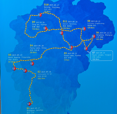 本屆環(huán)鄱賽將于9月17日至28日在全省11個設(shè)區(qū)市舉行,賽事總獎金25萬美元。參賽隊伍22支,參賽選手及領(lǐng)隊、教練員220人左右,全部由職業(yè)隊、國家隊及省隊組成。十一個分賽站為:贛州市上猶縣(17日)、吉安市吉安縣(18日)、萍鄉(xiāng)市武功山(19日)、新余市仙女湖(20日)、撫州市夢湖(21日)、上饒市橫峰縣(22日比賽、23日休息)、鷹潭市龍虎山(24日)、景德鎮(zhèn)市浮梁縣(25日)、宜春市靖安縣(26日)、九江市武寧縣(27日)、南昌市高新區(qū)(28日),大賽總賽程1056公里,轉(zhuǎn)場里程1788公里。11個賽站共設(shè)置25個途中沖刺點、10個爬坡點。