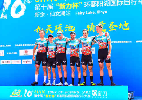 本賽段采用的是團(tuán)隊(duì)計(jì)時(shí)賽方式,全程28.9公里,起點(diǎn)位于仙女湖廣場(chǎng),終點(diǎn)設(shè)在圣集寺。車隊(duì)的出場(chǎng)順序由前三站的成績(jī)累計(jì)決定,前三站表現(xiàn)略遜一籌的車隊(duì)率先出發(fā),出發(fā)時(shí)間相隔兩分鐘,成績(jī)最好的車隊(duì)的壓軸出發(fā),以各隊(duì)第四名隊(duì)員抵達(dá)終點(diǎn)的成績(jī)?yōu)檐囮?duì)的參賽成績(jī)。沒有了前三站大團(tuán)體追逐競(jìng)速的雄偉場(chǎng)面,今天仙女湖畔的旖旎風(fēng)光間,呈現(xiàn)的是每隊(duì)5-6名運(yùn)動(dòng)員配合默契的高速騎行畫面,曲折多彎的環(huán)湖賽道考驗(yàn)的是車手們高超的車技、高度集中的精神和完美的團(tuán)隊(duì)?wèi)?zhàn)術(shù)。經(jīng)過一番緊張激烈的競(jìng)逐,德國(guó)助力車隊(duì)選手憑借均衡的綜合實(shí)力和默契的配合,僅以36分47秒完成比賽,站在了本站賽事的最高領(lǐng)獎(jiǎng)臺(tái)上,這也是該車隊(duì)在遭遇昨日萍鄉(xiāng)武功山賽段的失利后重新站上最高領(lǐng)獎(jiǎng)臺(tái)。緊隨其后獲得第二、三名的是分別以36分59秒、37分02秒沖線的美國(guó)瑪吉斯野生世代洲際車隊(duì)和中國(guó)云南綠山園林車隊(duì)。與前一站相比,四色領(lǐng)騎衫僅有最考驗(yàn)綜合實(shí)力的個(gè)人總成績(jī)(藍(lán)冠軍衫)易主,穿在了本站冠軍車隊(duì)――德國(guó)助力車隊(duì)選手阿德內(nèi)?威廉簡(jiǎn)身上,其他三色領(lǐng)騎衫與上一站相同,分別是:美國(guó)瑪吉斯野生世代洲際車隊(duì)選手肯特?貝爾納迪尼?羅斯獲沖刺王(橙冠軍衫);法國(guó)國(guó)防車隊(duì)選手朱利安?阿馬多利勇奪登山王(圓點(diǎn)冠軍衫);中國(guó)江西新力物業(yè)車隊(duì)選手彭源堂第四次蟬聯(lián)最佳大中華(粉紅冠軍衫)。